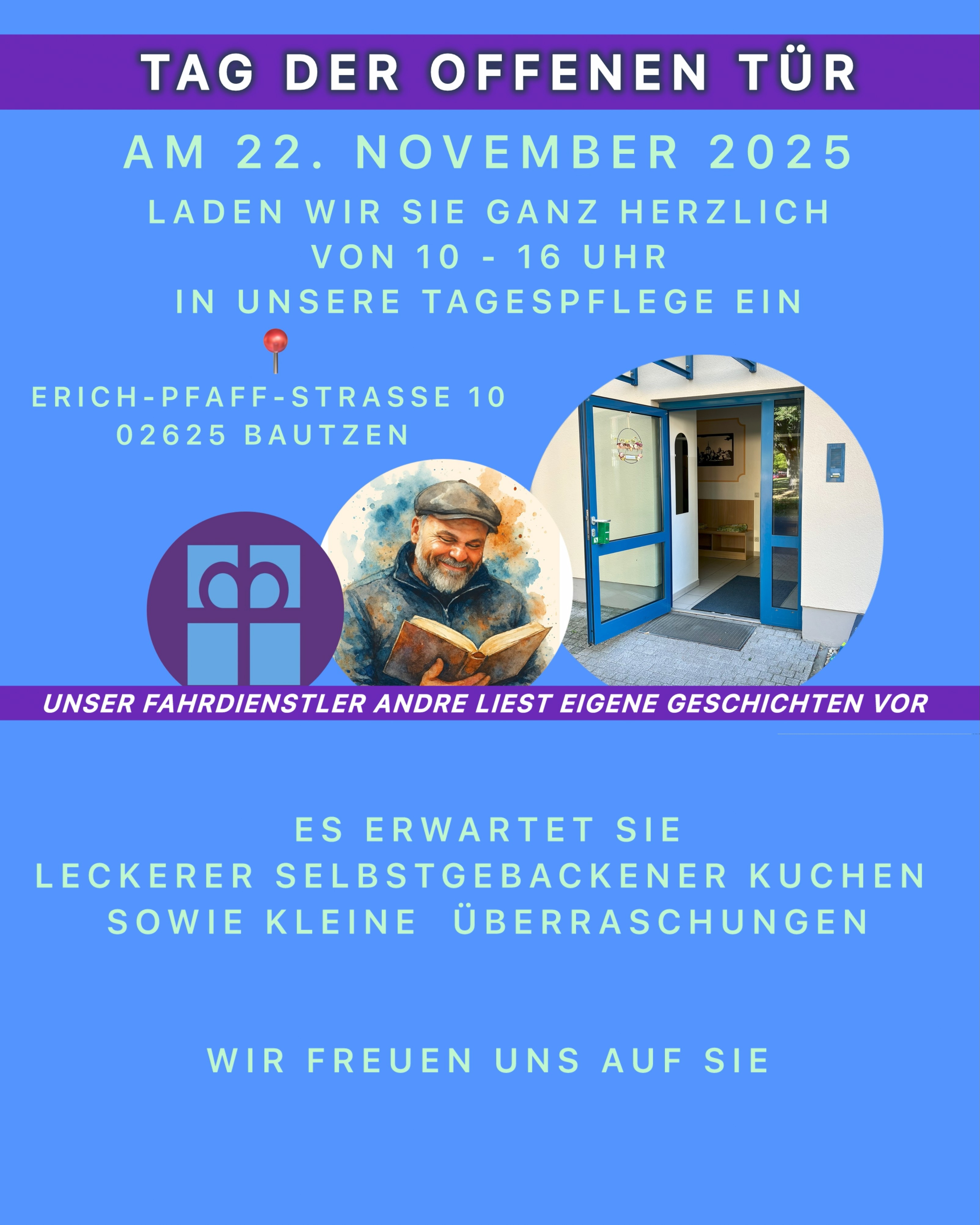 wir laden Sie herzlich zum Tag der offenen Tür in unserer Tagespflege am 22.11.2025 ein!